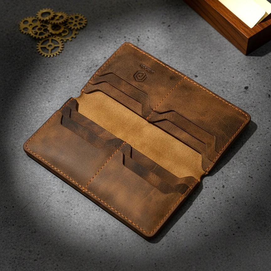 Over time, the pull-up leather develops a beautiful, natural color change (patina), making each wallet one-of-a-kind.